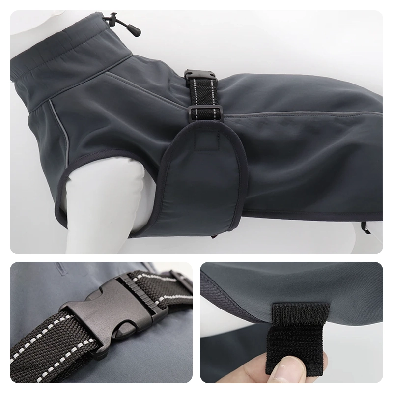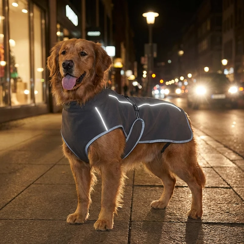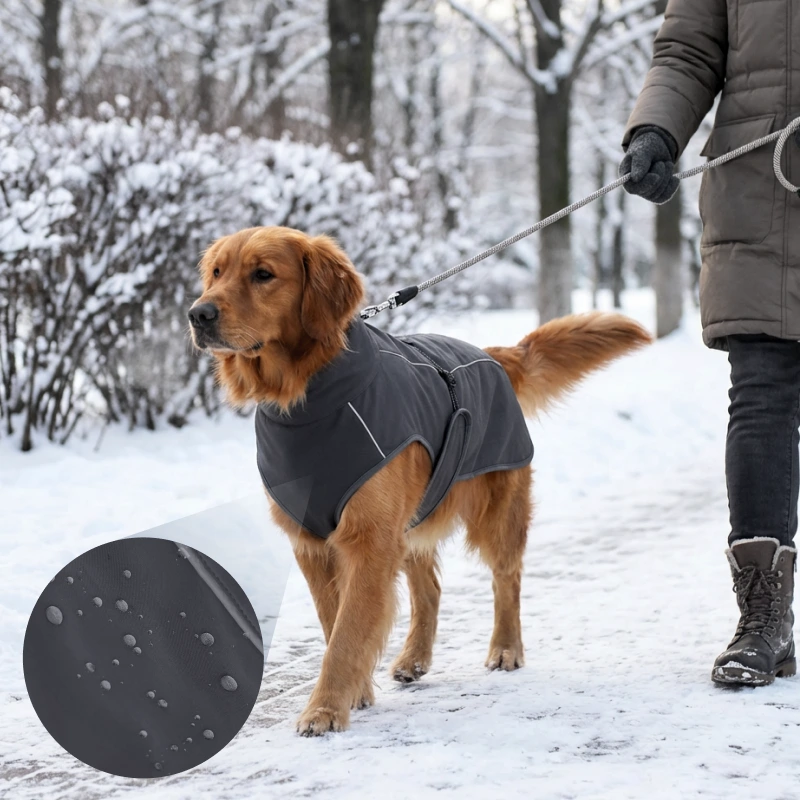 Jachetă impermeabilă reflectorizantă pentru câini, cu umplutură de bumbac călduros