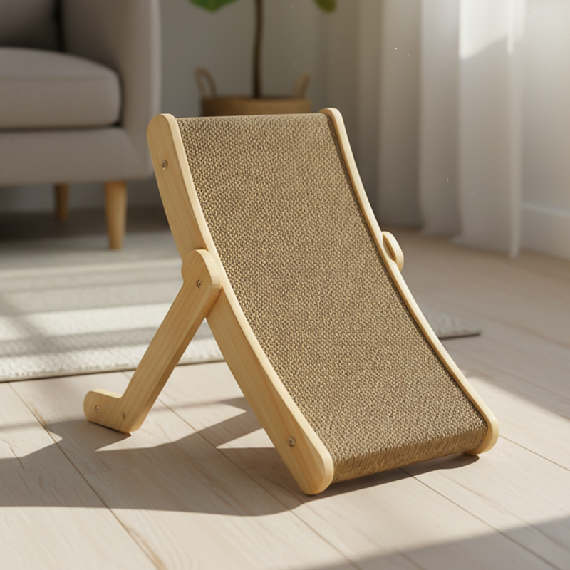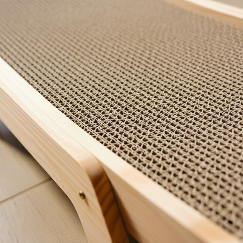 Pat din lemn pentru pisici cu placă de zgâriat sisal în formă de U