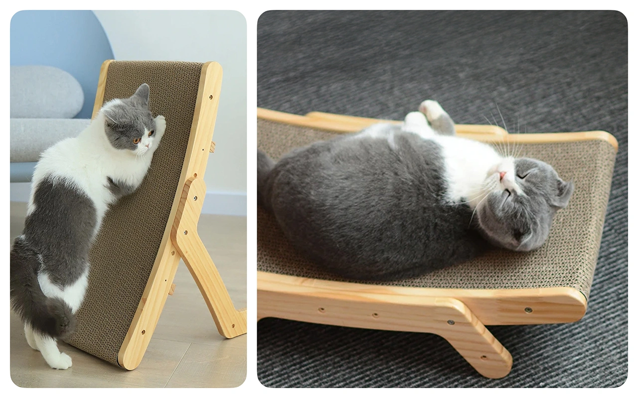 Unghiurile multiple susțin întinderea, relaxarea și întărirea mușchilor. Fiecare pisică găsește o poziție preferată pentru odihnă sau joacă.