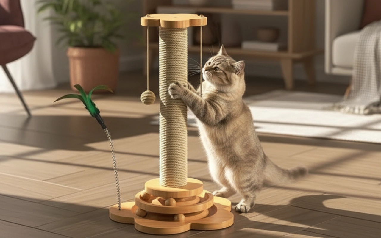 Lemnul rezistent și sisalul asigură utilizare de lungă durată pentru animalele active. Zgârierea, cățărarea și joaca rămân în siguranță în fiecare zi.